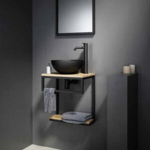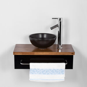 ארונית אמבטיה צרה 30/45 ס״מ שחור עם משטח בוצ'ר