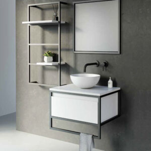 ארון אמבטיה מתכת 51 ס״מ עם משטח חרס דגם סביון