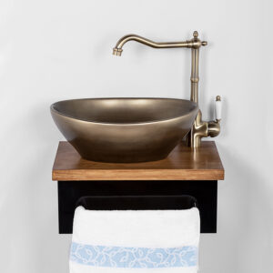 ארונית אמבטיה קטנה 30/45 ס״מ שחור וברונזה כיור ברז ומראה