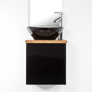 ארונית אמבטיה קטנה 30/60 ס״מ שחור עם כיור ברז ומראה
