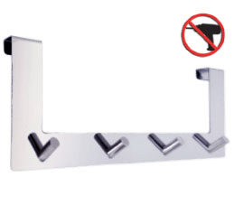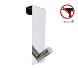 קולב על דלת 4|2 ס״מ רביעיה ללא קידוח ניקל מבריק