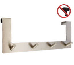 קולב על דלת 4|2 ס״מ רביעיה ללא קידוח ניקל מוברש