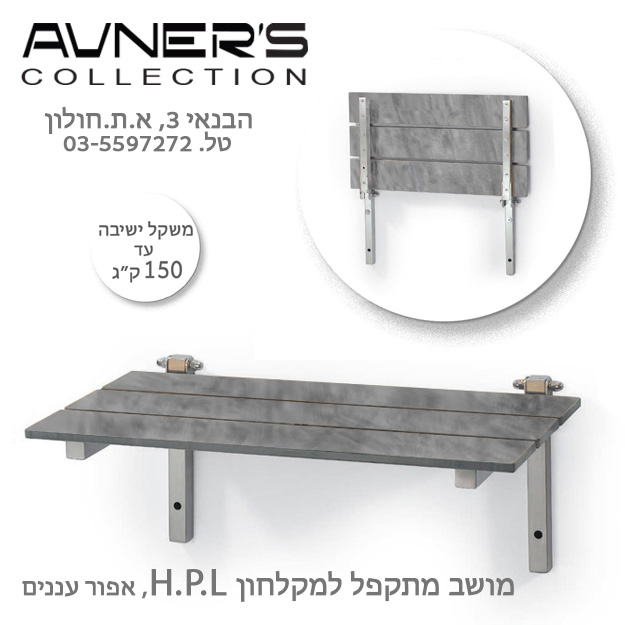 מושב מתקפל למקלחון H.P.L אפור עננים