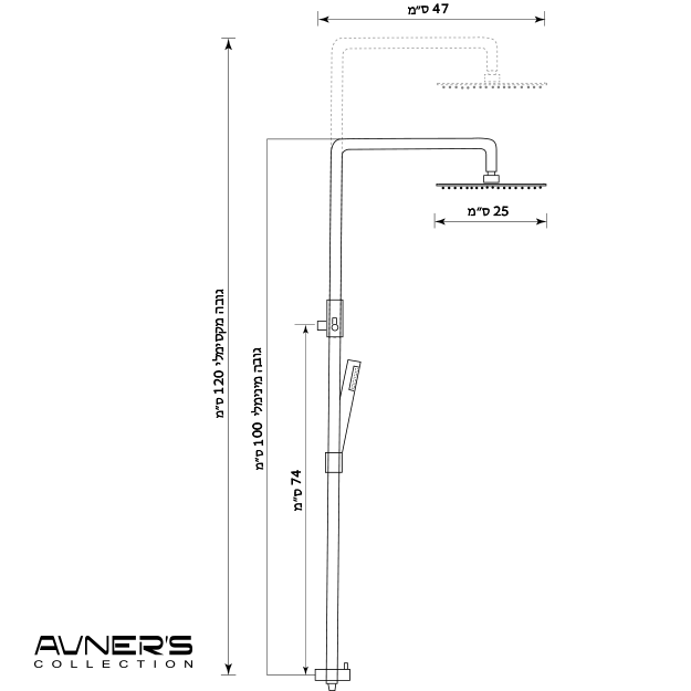 - מערכת משולבת: מוט רחצה, ראש גשם, מזלף יד, צינור