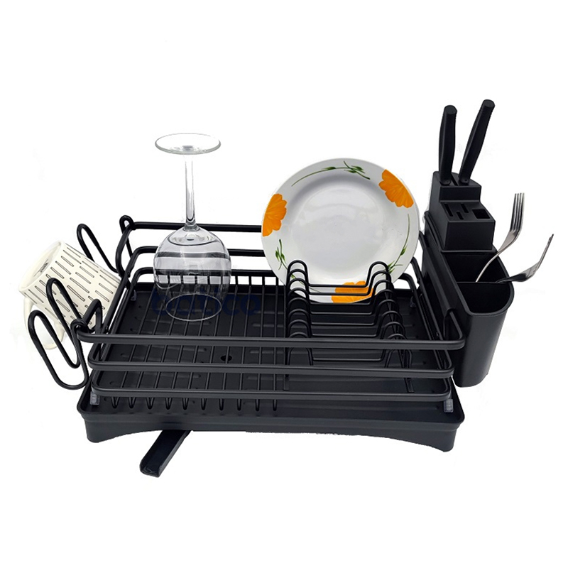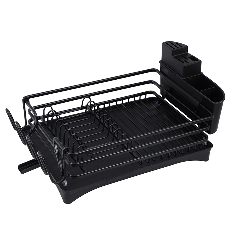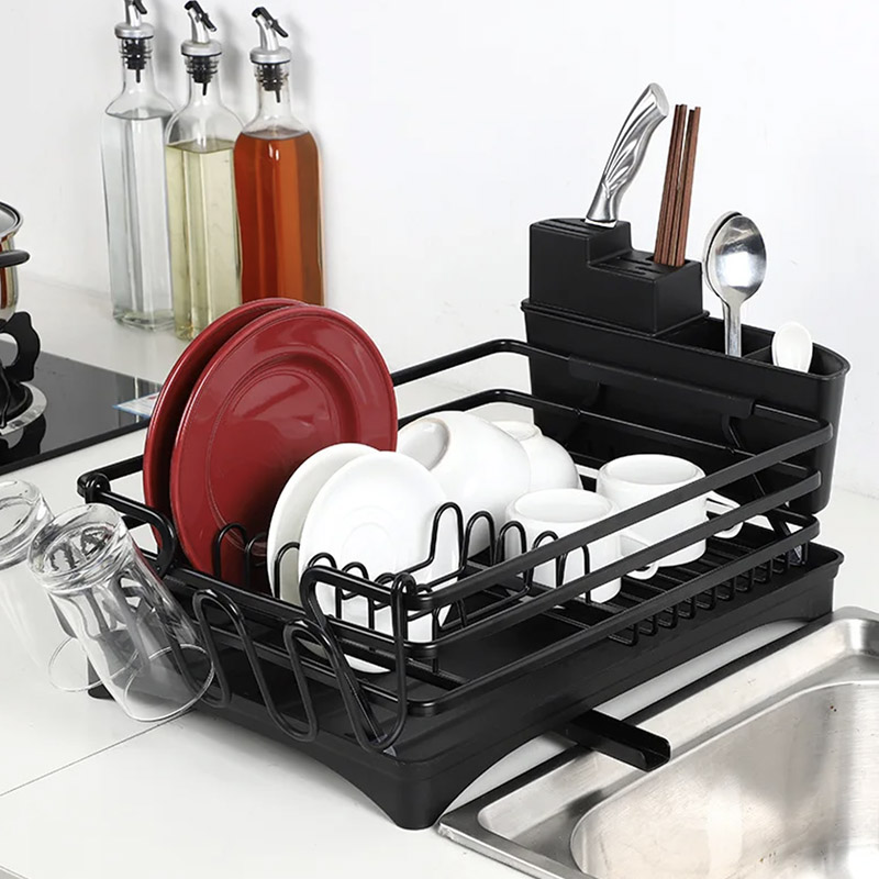 מתקן לייבוש כלים למטבח בגימור שחור מט עם מגש המונע מהשיש להירטב