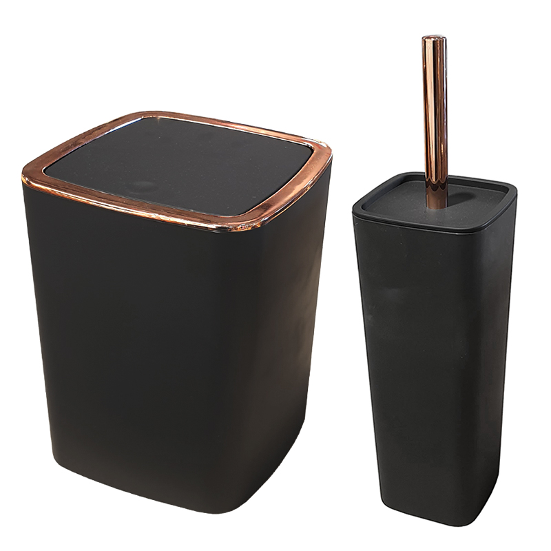 - הסט כולל: פח אשפה, מברשת אסלה, דיספנסר, כוס ומגש.