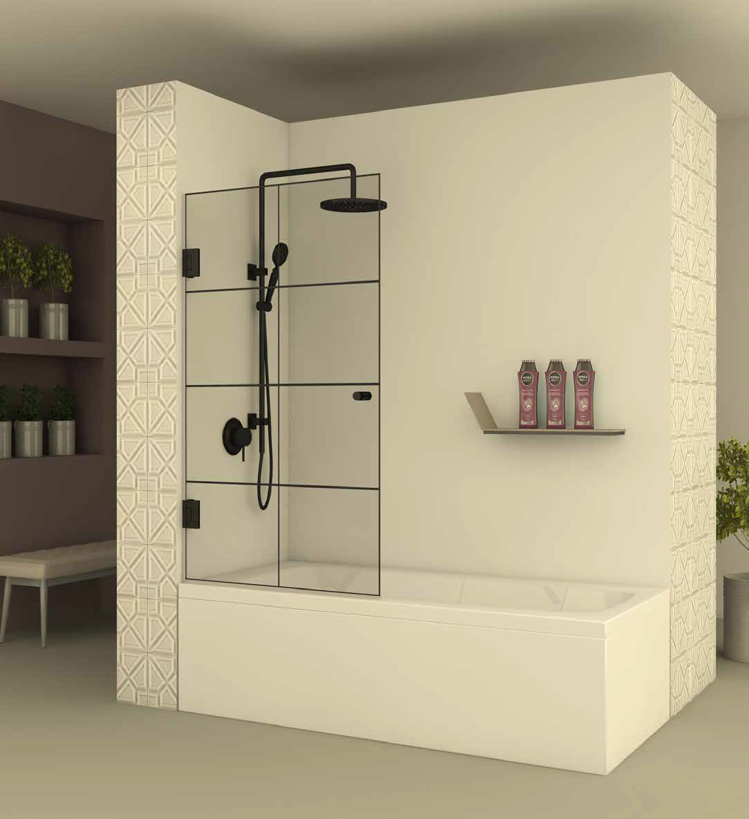 מקלחון חזית BLACK104 – אמבטיון חזיתי בעל בעל דלת הנפתחת פנימה והחוצה