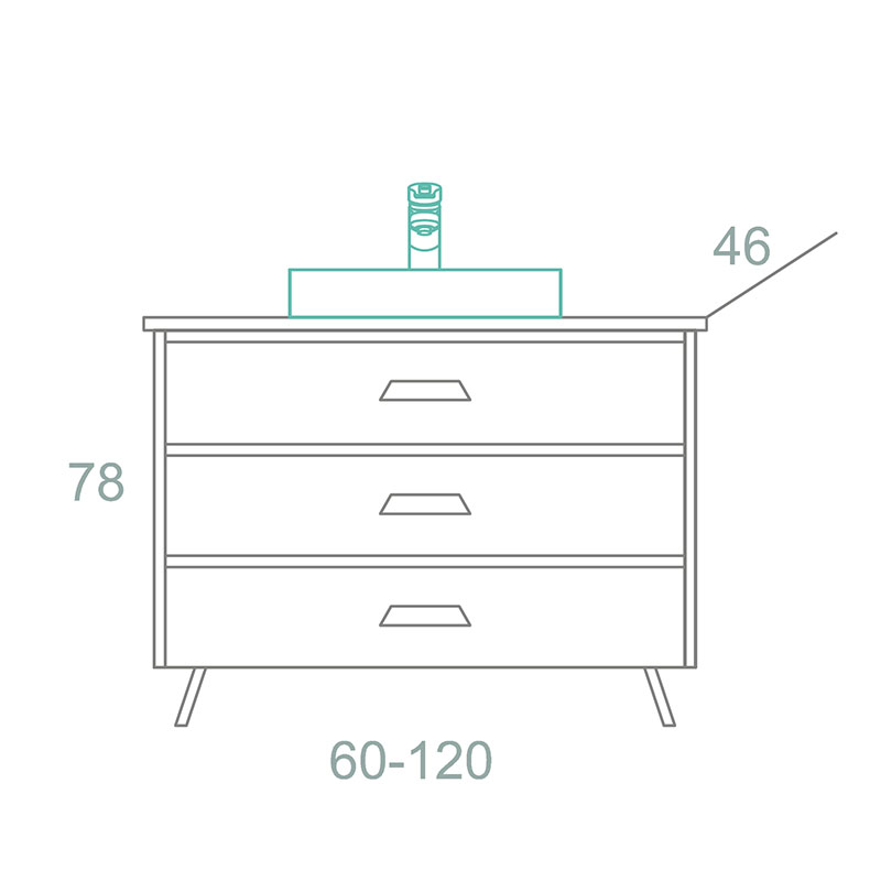 ארון אמבטיה מגירות 60-120 ס״מ עם כיור מונח דגם צ'ארלס