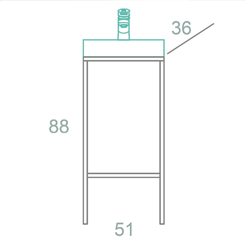 - ארון אמבטיה מתכת 51 ס״מ עם משטח חרס