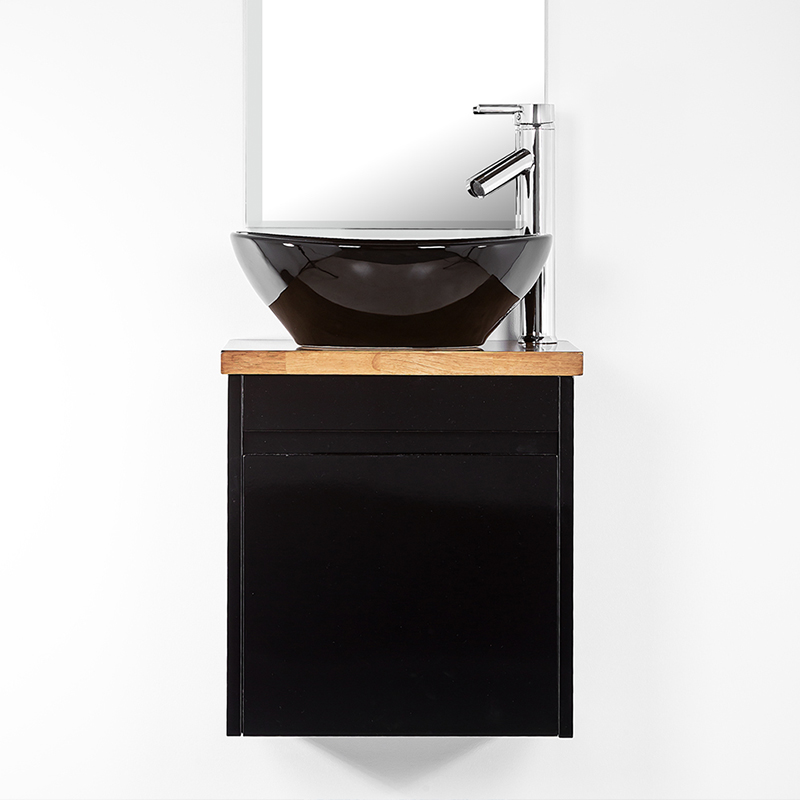 ארונית אמבטיה צרה 30/45 ס״מ שחור עם משטח בוצ'ר