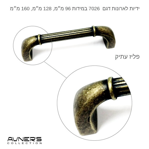 ידיות לארונות דגם 7026 במידות פליז עתיק