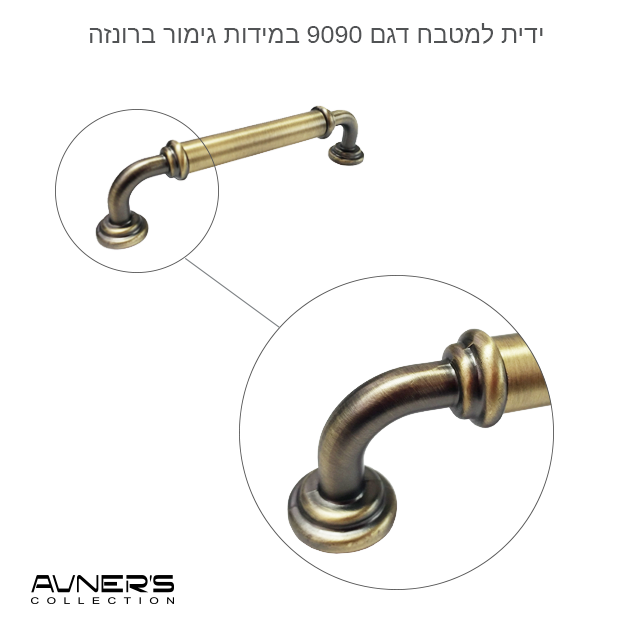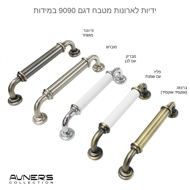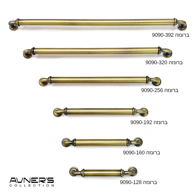 חומר: מזק צבע: ברונזה (אוקסיד-אוקסיד) מרחק בין החורים לקידוח: 128 מ״מ /  392 מ״מ ניתן להזמין ידיות 9090 אוקסיד אוקסיד במידות לא סטנדרטיות עד מידה 392 מ"מ לפי דרישת הלקוח.   יבואן: אבנר'ס קולקשיין בע״מ