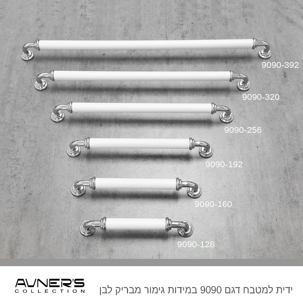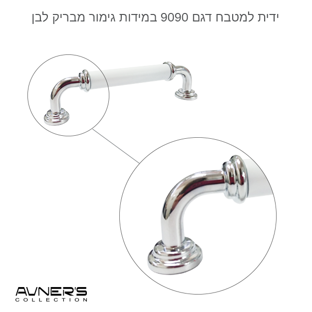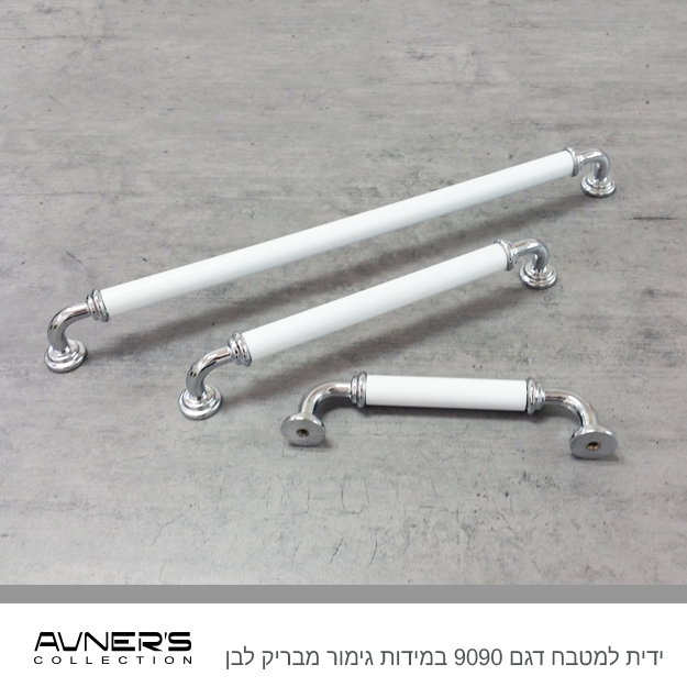 ידיות לארונות מטבח דגם 9090 במידות מבריק עם לבן