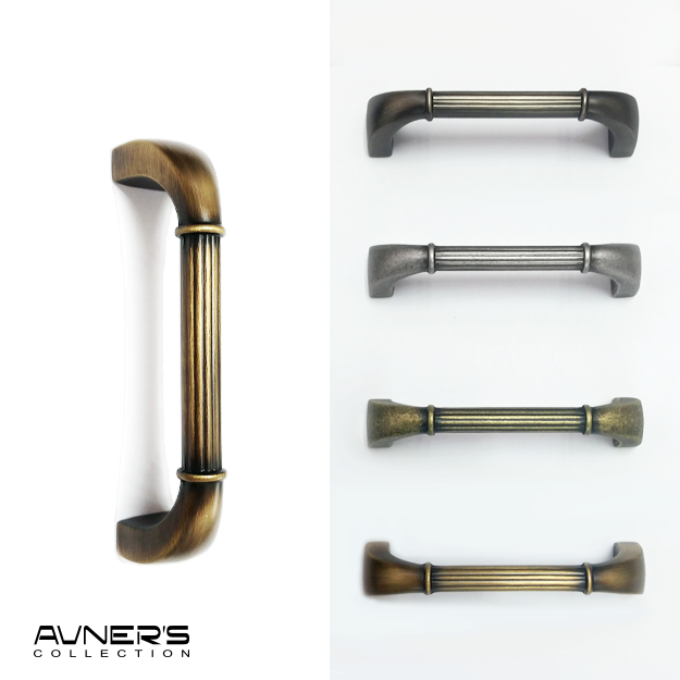 • ידית מגיעה ב-4 גימורים: כסף עתיק, פליז עתיק, פיוטר מושחר, אוקסיד ברונזה