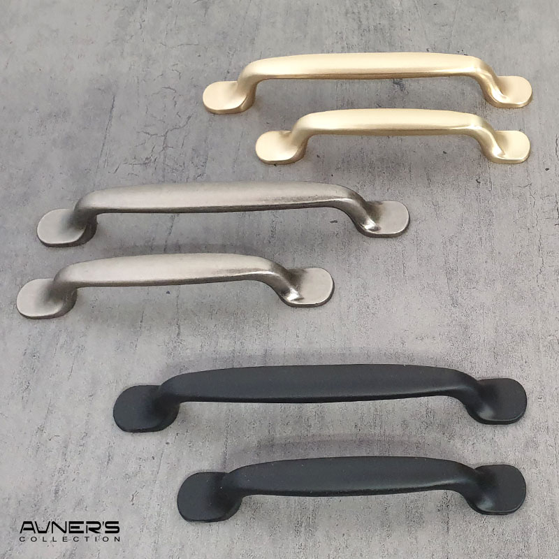 מבחר עשיר ידיות לארונות ולריהוט בגימור שחור מט, ידיות מעוצבות למטבח כפרי או קלאסי, ניתן לשלב עם ידיות כפתור בגימור שחור או ידיות קונכיה.