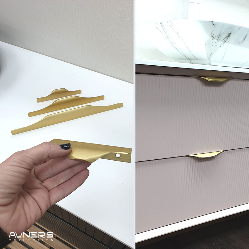 ידיות מעוצבות רוכבות מתאימות לארונות מטבח, למגירות בסגנון מודרני. להרכבה על כל רהיט בצורה מהירה, נוחה ונקיה. ידית אינטגרלית לריהוט נוחה בשימוש ונותנת מענה קו עיצוב מינימליסטי נקי הרכבת הידית על דופן הדלת או מגירה, ברגים מוסתרים בהתקנה אחורית של הריהוט