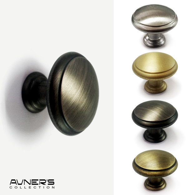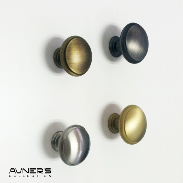 - ידית כפתור מעוצבת למגירות דגם 3133 קיימת ב-5 גימורים: ברונזה פליז עתיק / פיוטר מושחר / זהב מט / ניקל מוברש / זהב מבריק