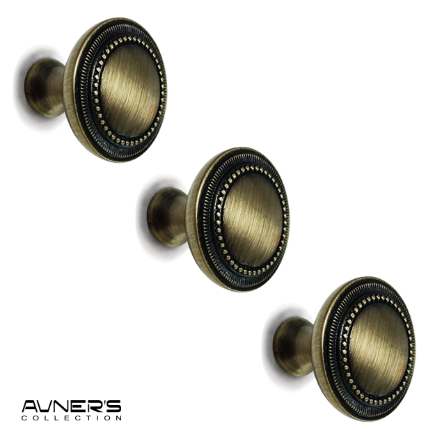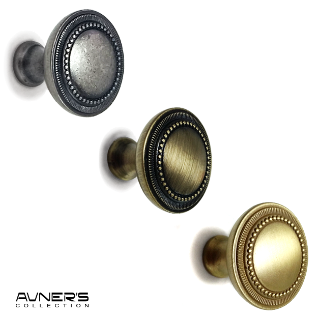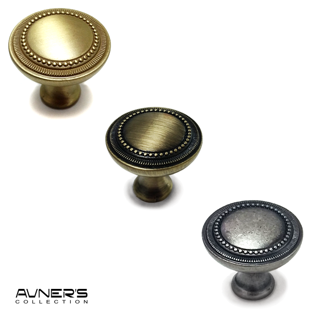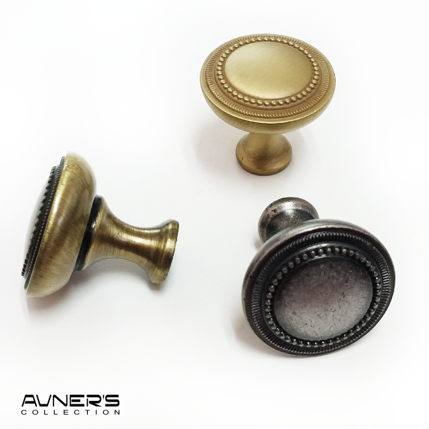 • ידית כפתור לארונות דגם 3134 קיימת ב-3 גימורים: ברונזה אוקסיד / זהב מט / מושחר כסף עתיק