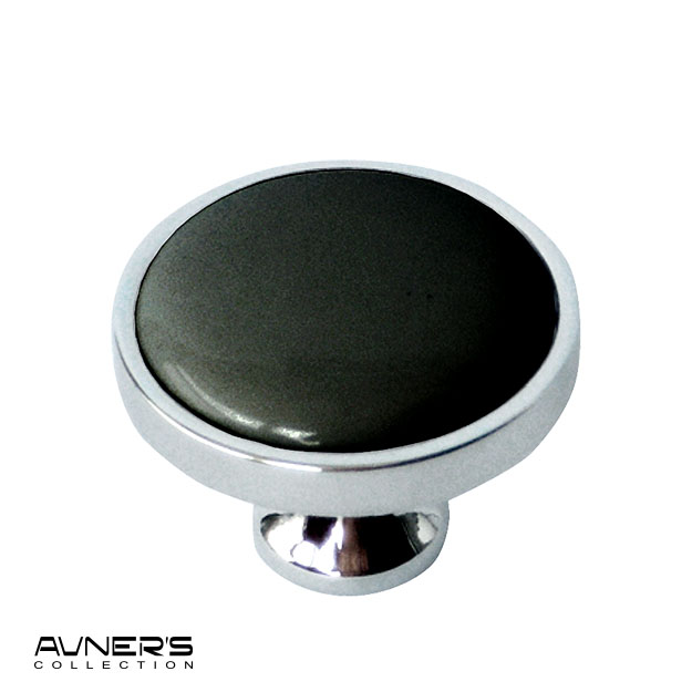 ידית כפתור פורצלן שחור K328B כרום מבריק