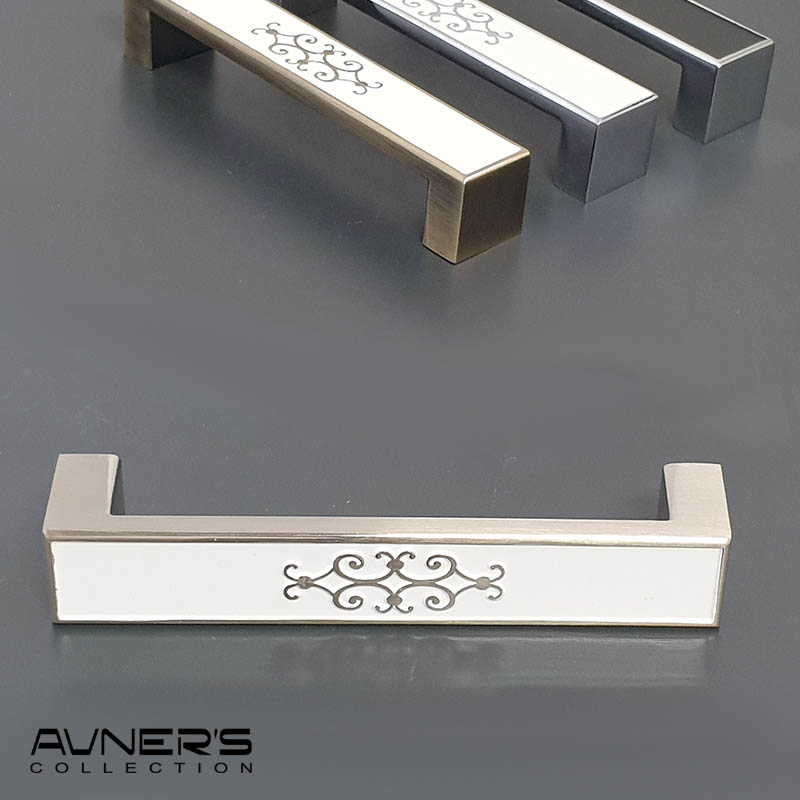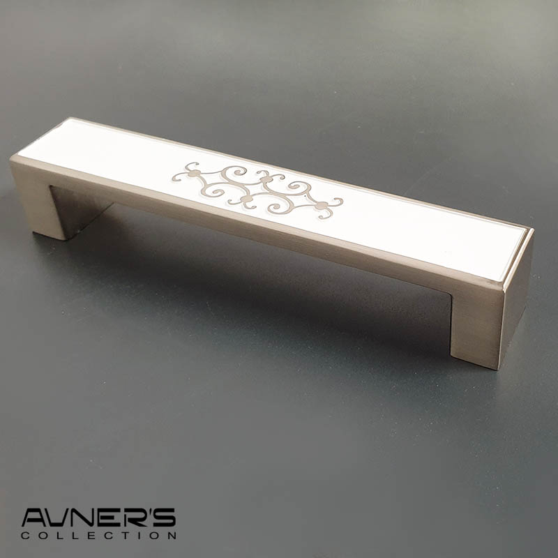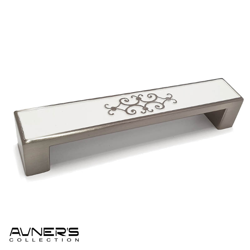 ידית לארון מטבח דגם 313 במידה 128 מ״מ אמייל לבן עם מוברש