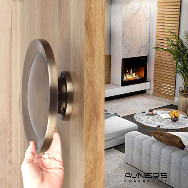 ידית משיכה לדלת כניסה מעוצבת עגולה 20 ס״מ ברונזה PREMIUM