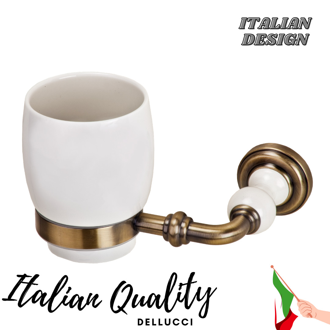 • כוס למברשות שיניים תלויה בגוון ברונזה וקרם מסדרת ג'ולייט מבית דלוצ'י