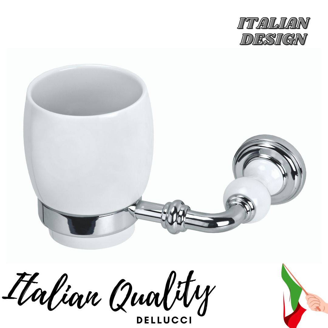 - כוס למברשות שיניים תלויה בגוון ניקל ולבן מסדרת ג'ולייט מבית דלוצ'י
