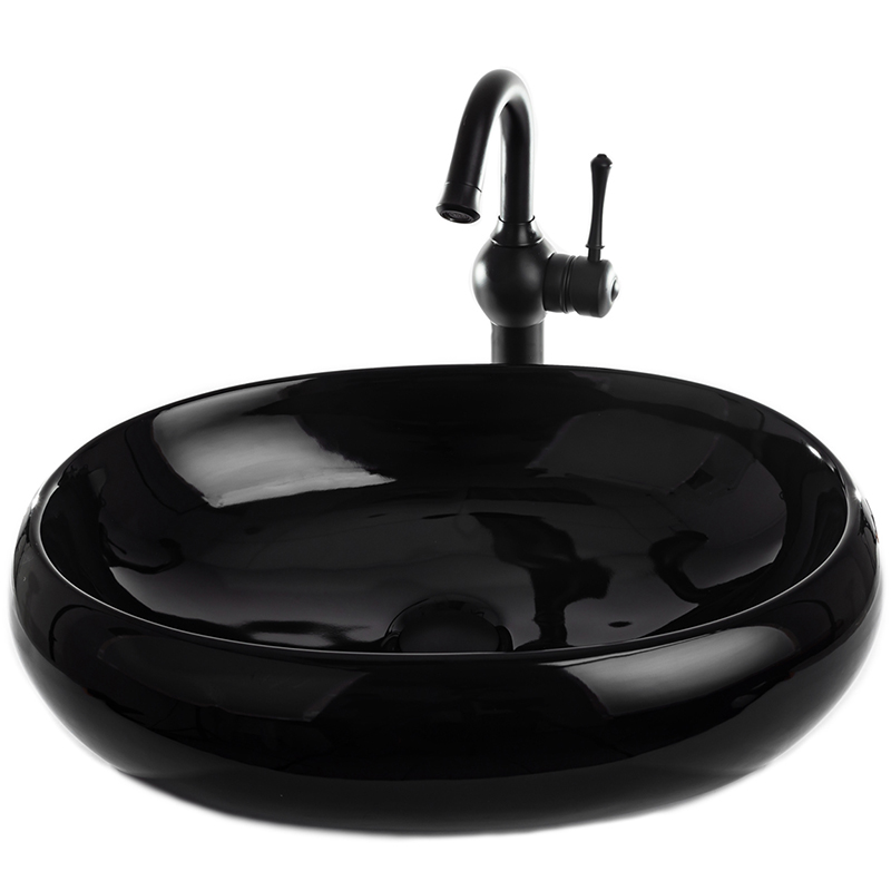 כיור אמבטיה מונח אובלי שחור מבריק 56/38/15 ס״מ