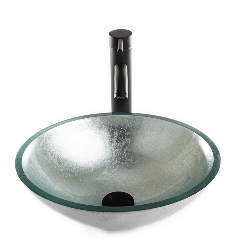 כיור זכוכית מנוח אובלי מעוצב 41/33 ס״מ כסף מקומט