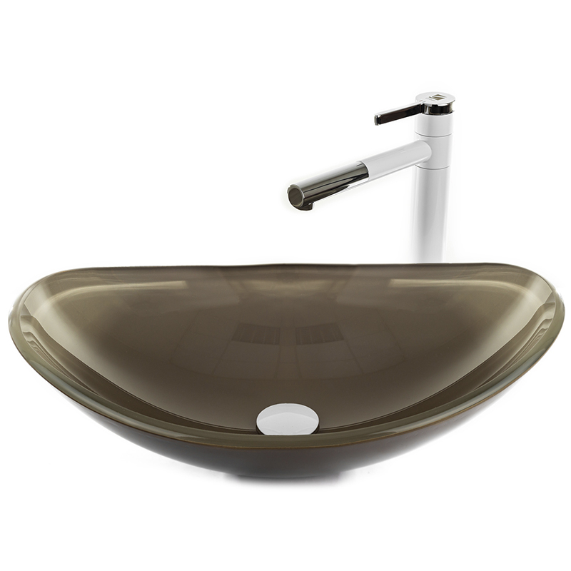 כיור זכוכית מונח אובלי מעוצב 54/36 ס״מ מוקה