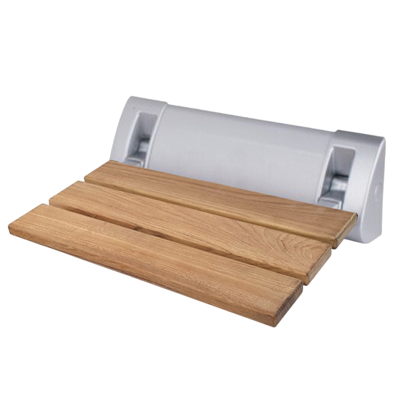 כסא מתקפל למקלחת MERCURY עץ טיק 50 ס״מ אנודייז