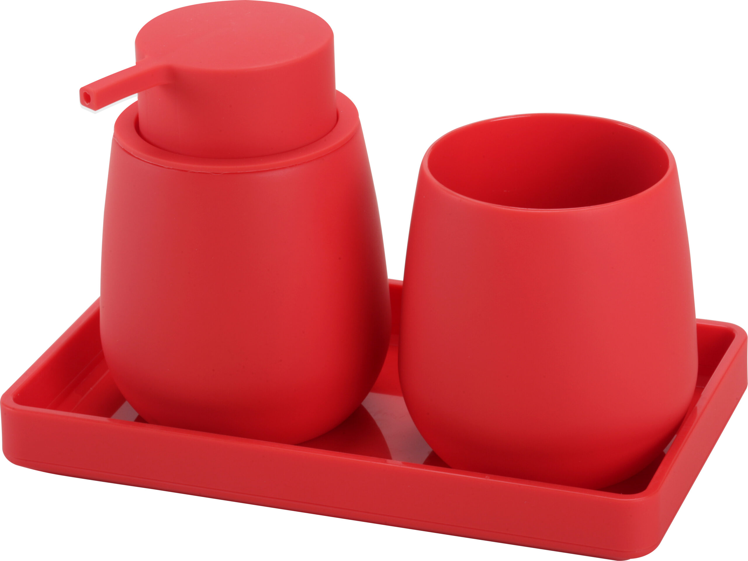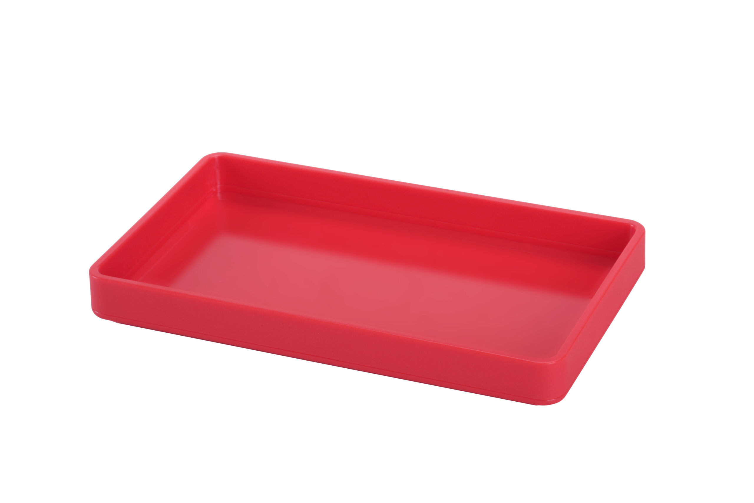 מגש מונח לכיור אמבטיה להנחת דיספנסר וכוס בגוון אדום בוהק מסדרת אביזרי אמבטיה מונחים טוקיו, מבית אבנר'ס