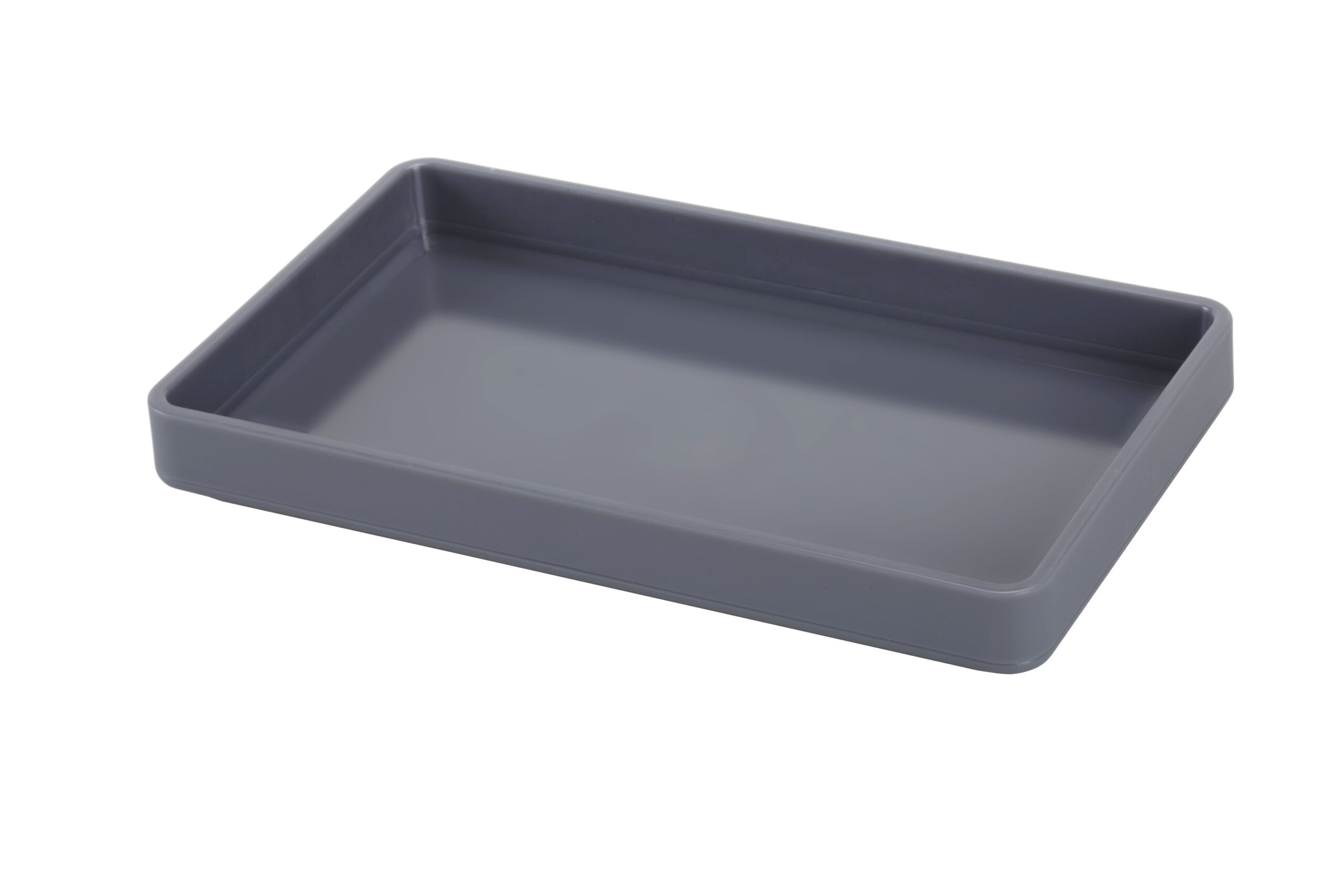 מגש מונח לכיור אמבטיה להנחת דיספנסר וכוס בגוון אפור מסדרת אביזרי אמבטיה מונחים טוקיו, מבית אבנר'ס
