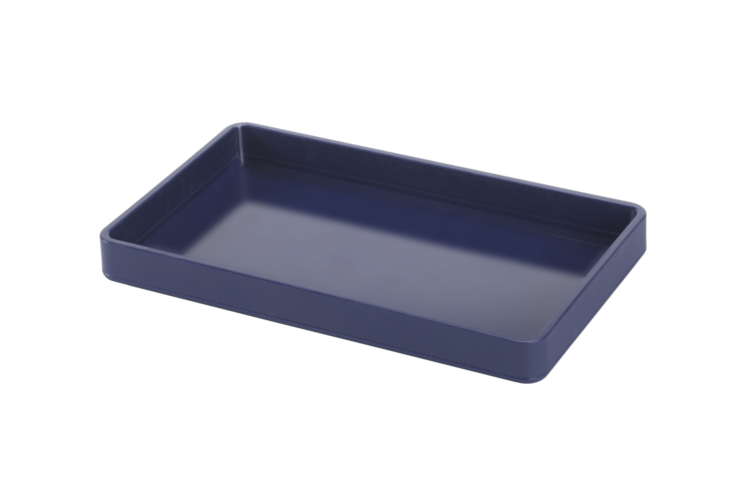 מגש מונח לכיור אמבטיה להנחת דיספנסר וכוס בגוון כחול נייבי מסדרת אביזרי אמבטיה מונחים טוקיו, מבית אבנר'ס