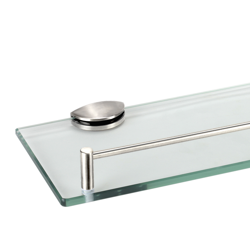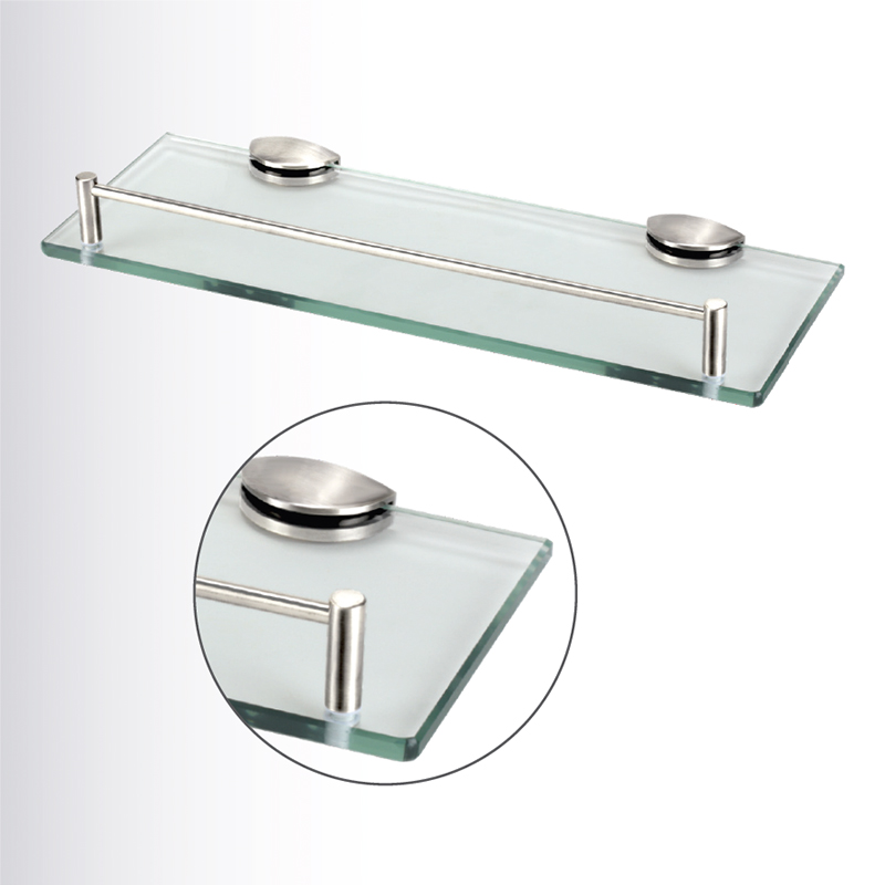 מדף זכוכית לאמבטיה 35 ס״מ זכוכית שקופה ניקל מוברש