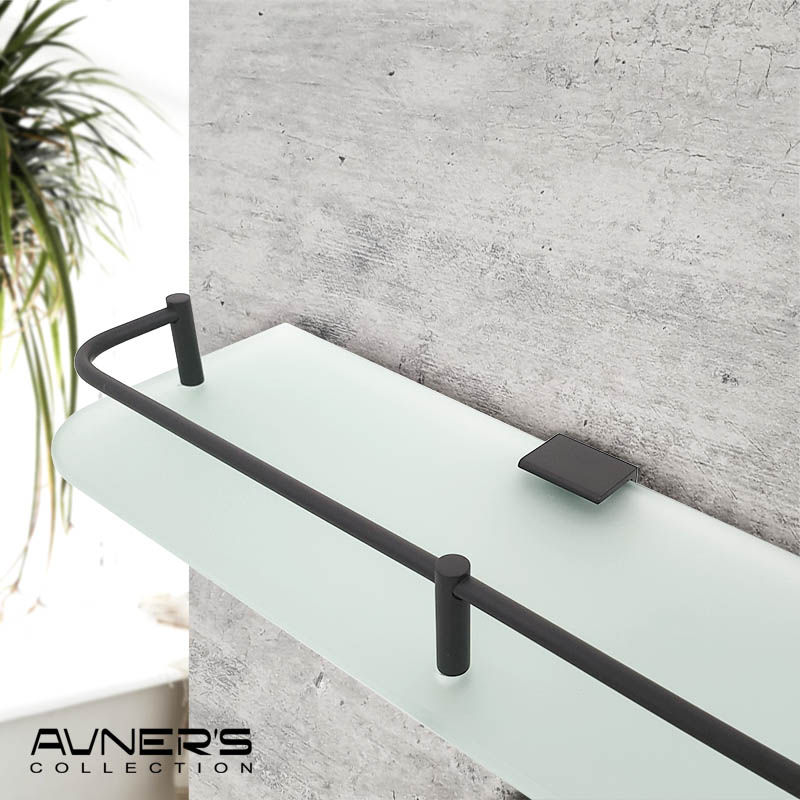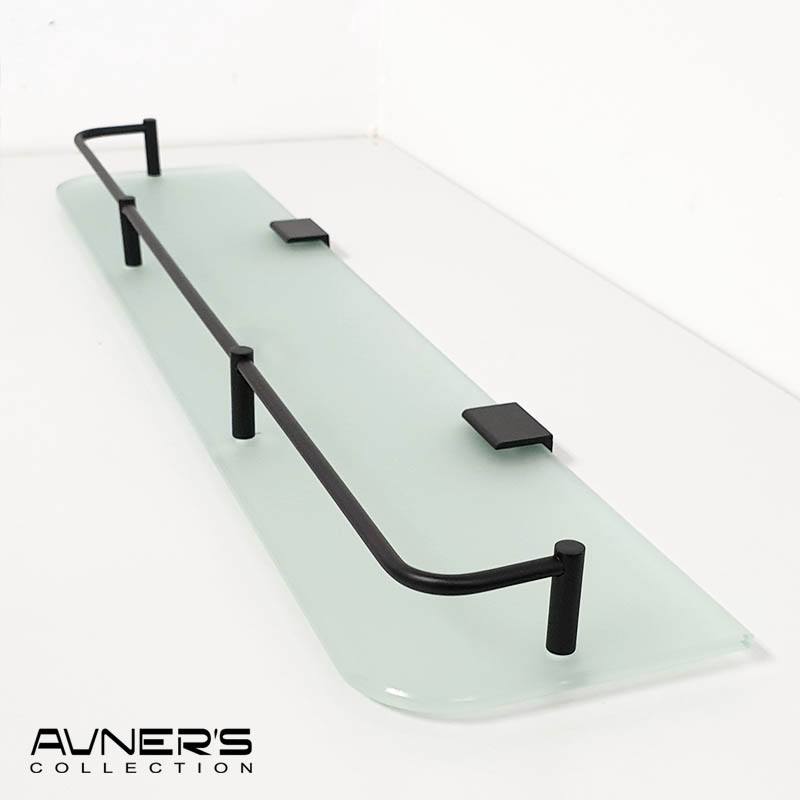 מדף זכוכית לאמבטיה 60 ס״מ לוטוס פרזול שחור