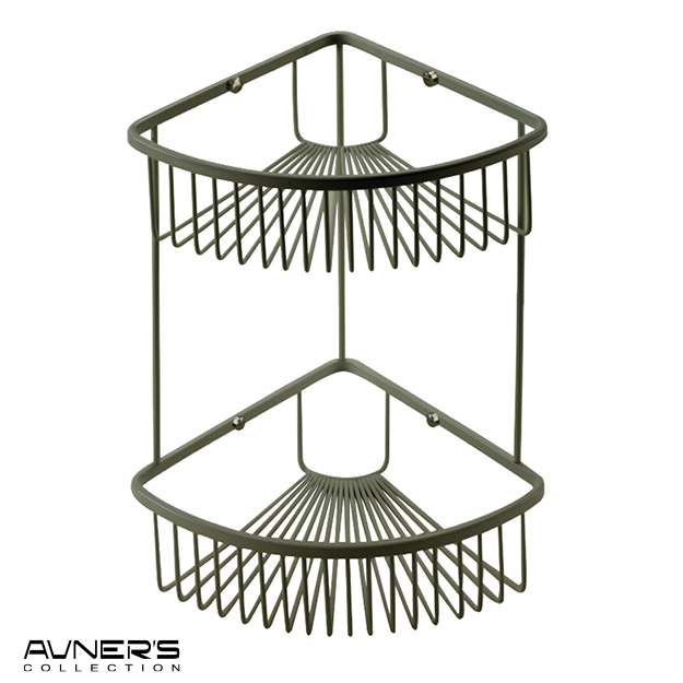 - מדף רשת למקלחת פינתית כפולה מעוגלת בגימור גרפיט