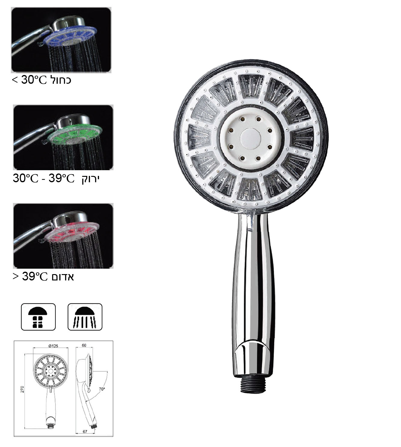- תאורה מתחלפת לפי טמפרטורת המים