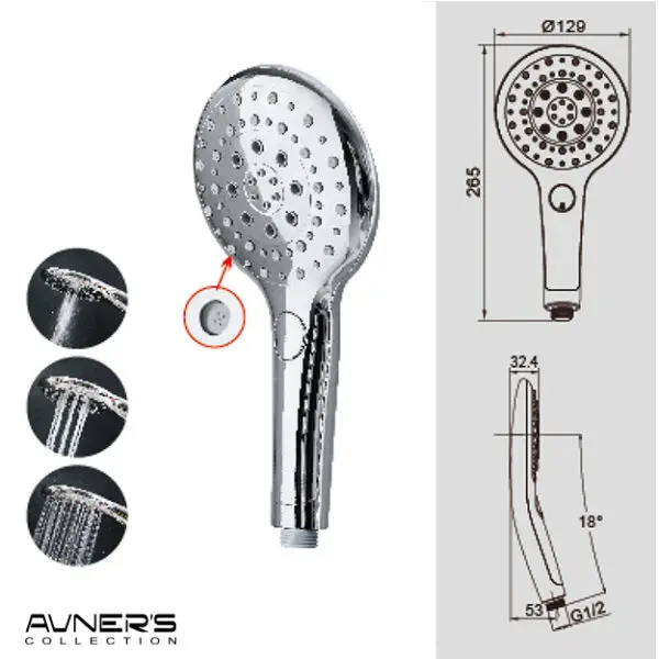 - מזלף מקלחת מפואר 3 מצבים ניקל מבריק