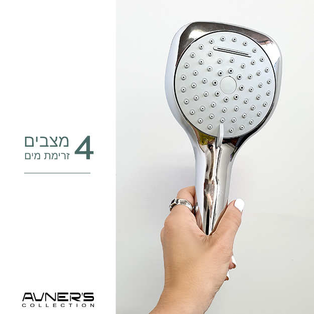 • מזלף מקלחת מפל 4 מצבי זרימה ניקל מבריק