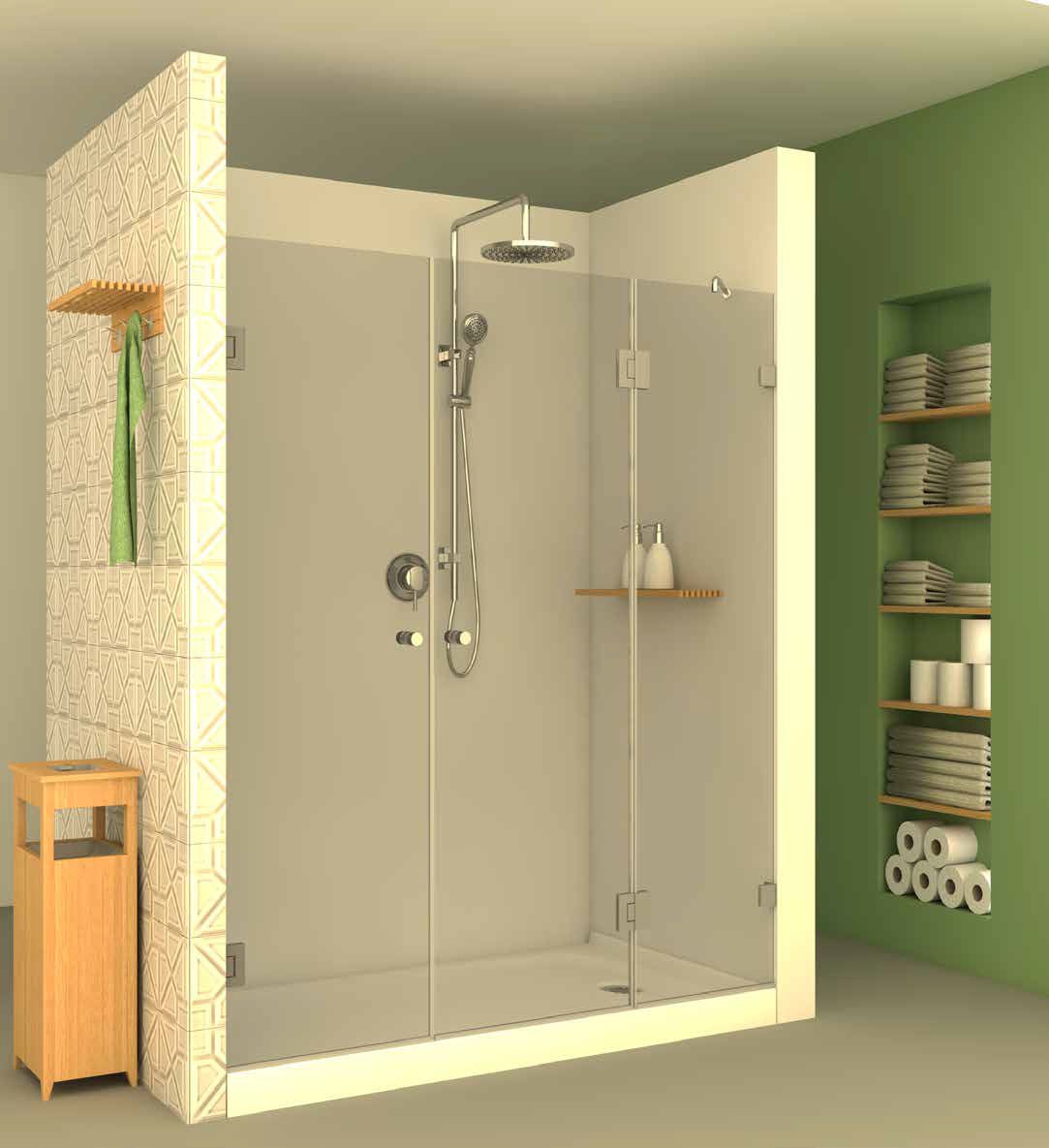 מקלחון חזית front703 – מקלחון בעל דופן קבועה ושתי דלתות הנפתחות פנימה והחוצה