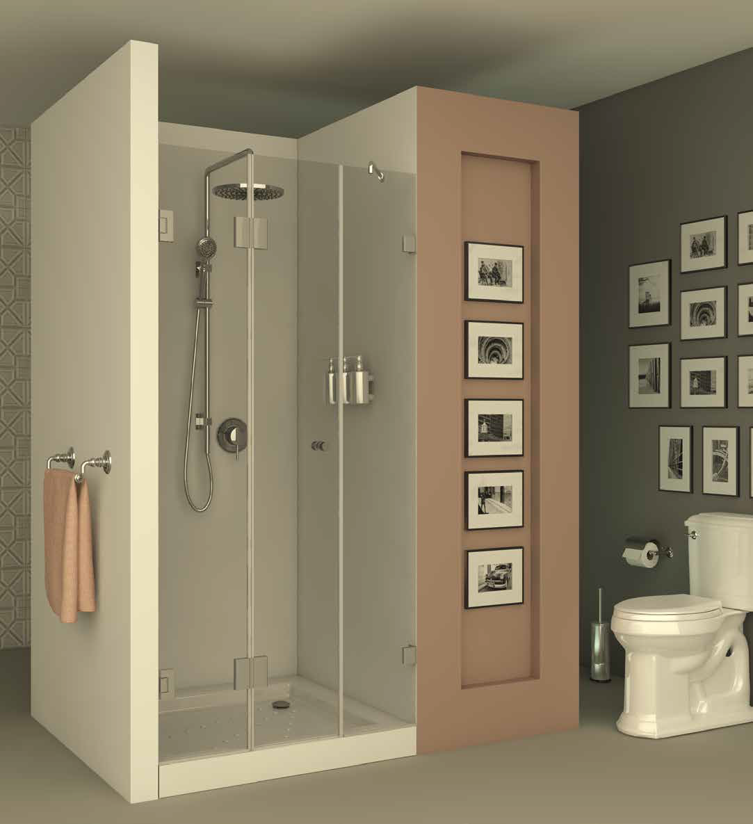 מקלחון חזית front708 – מקלחון בעל חצי דופן קבועה וחצי דלת הרמוניקה המתקפלת פנימה והחוצה