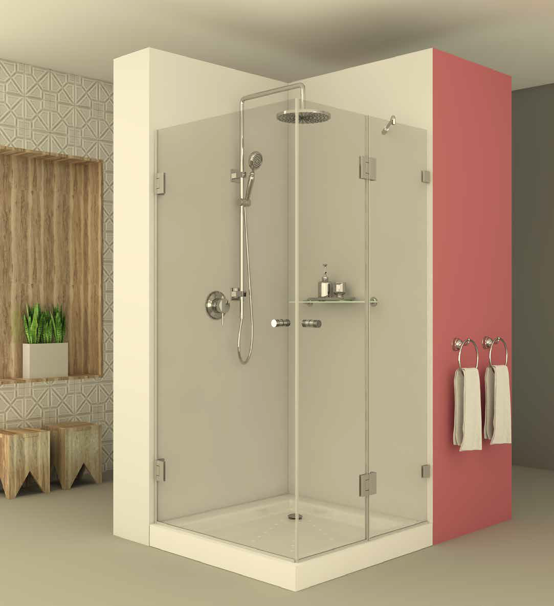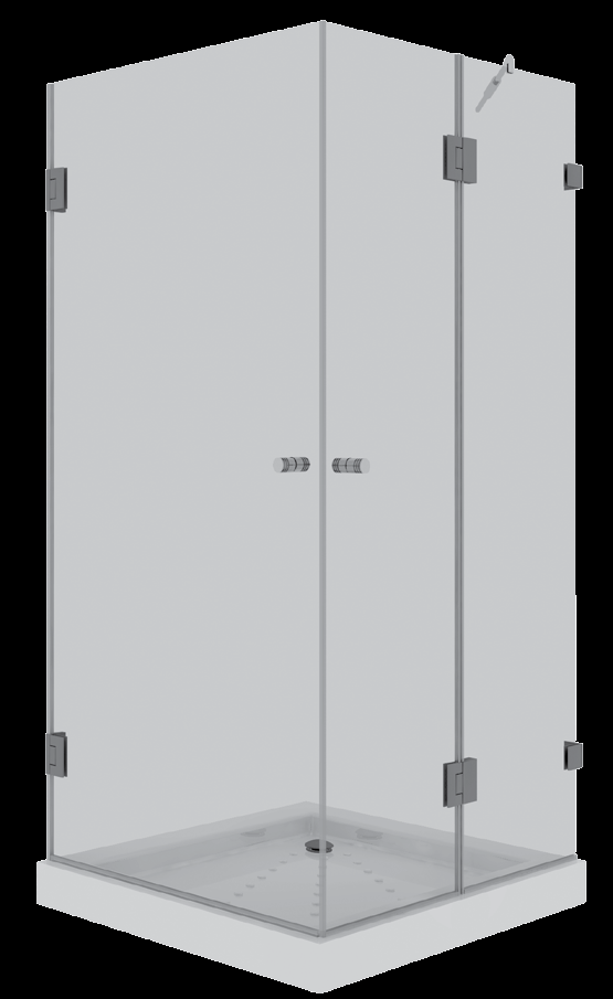 מקלחון square604 – מקלחון פינתי בעל דלת מצד אחד ודופן קבועה ודלת מהצד השני