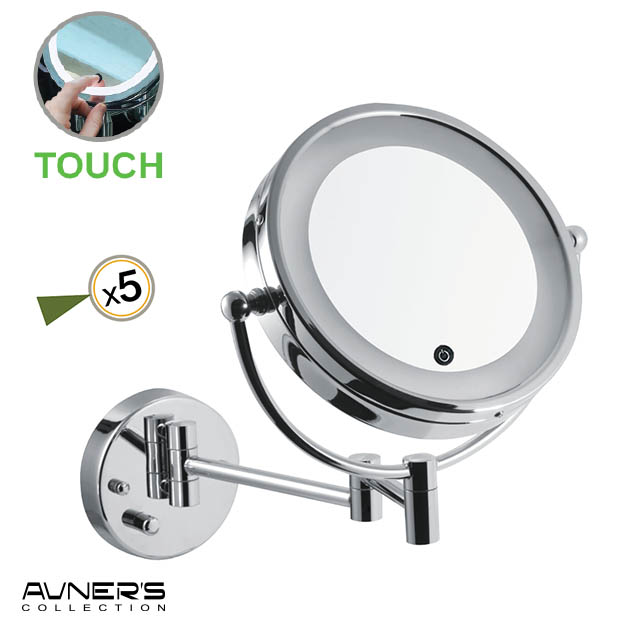 מראה מגדילה פי 5 עם תאורה בטריות לקיר M13