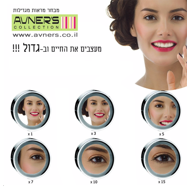 מראה מגדילה עם תאורה פי 5 | 7 | 10, נטענת M26