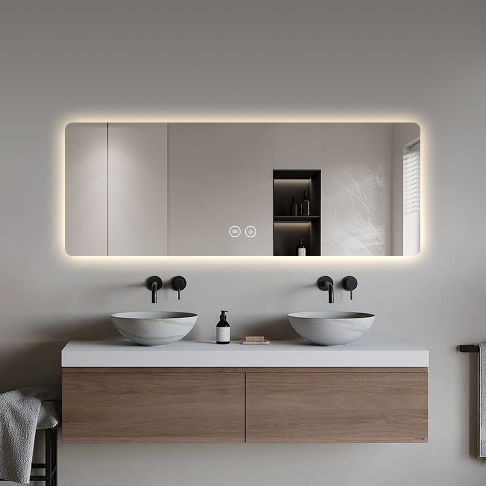 • מראה מלבנית עם תאורת לד לחדר אמבטיה