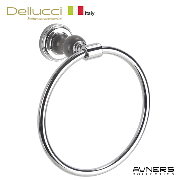 - מתלה טבעת למגבת פנים בגוון מוברש מסדרת ג'ולייט ניקל עם אפור מבית דלוצ'י