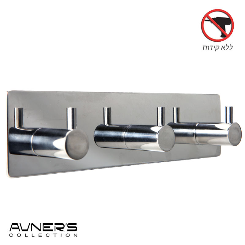 • מתלה למגבות עם 3 ווים 6103CP ניקל מבריק ללא קידוח בהדבקה