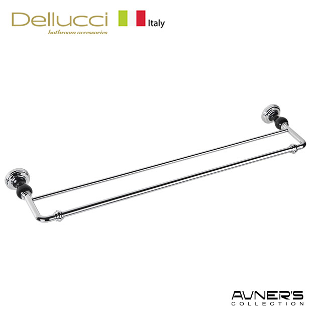 • מתלה למגבת כפול 60 ס״מ בגוון ניקל עם שחור מסדרת ג'ולייט מבית דלוצ'י