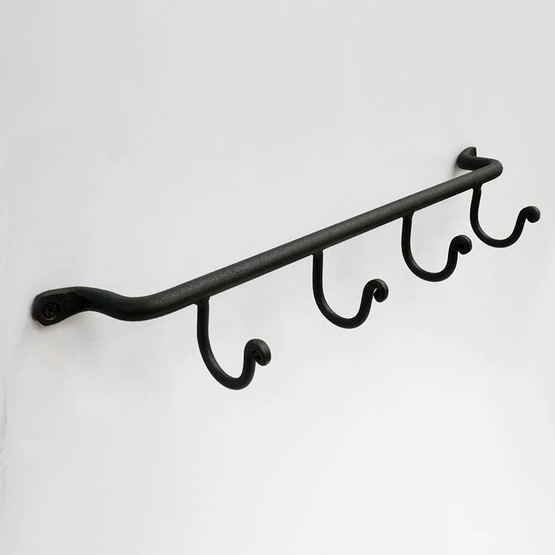 מתלה מגבות 4 ווים שחור קלאסי עבודת יד נפחות